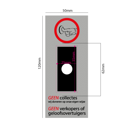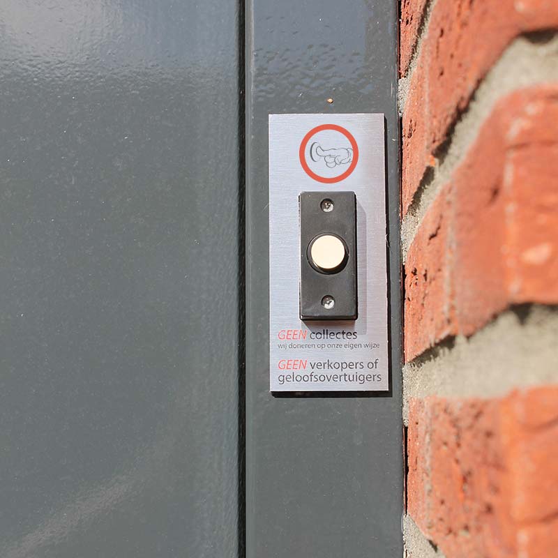 geen verkoop of collecte aan de deur bordje voor achter je bel